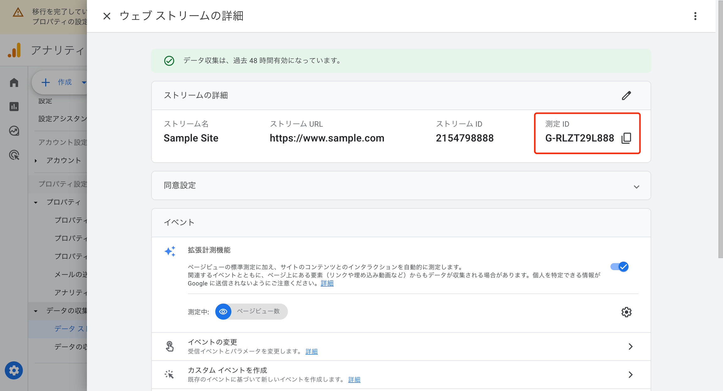 注意事項:GA4データの処理には時間がかかるため、集成を有効化した後、GA4でデータが表示されるまでには24〜48時間かかる場合があります。お待ちいただく必要があります。
