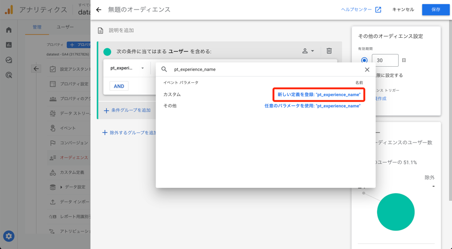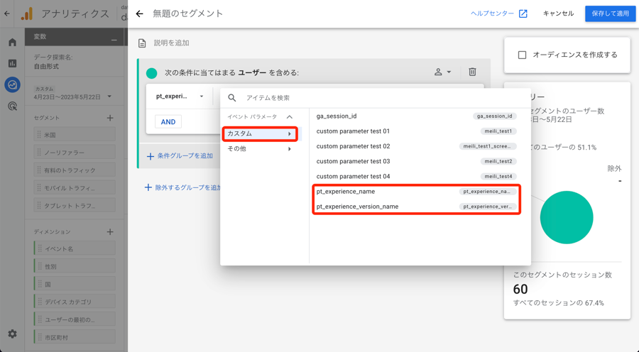 「カスタム」をクリックし、pt_experience_nameを選択します。