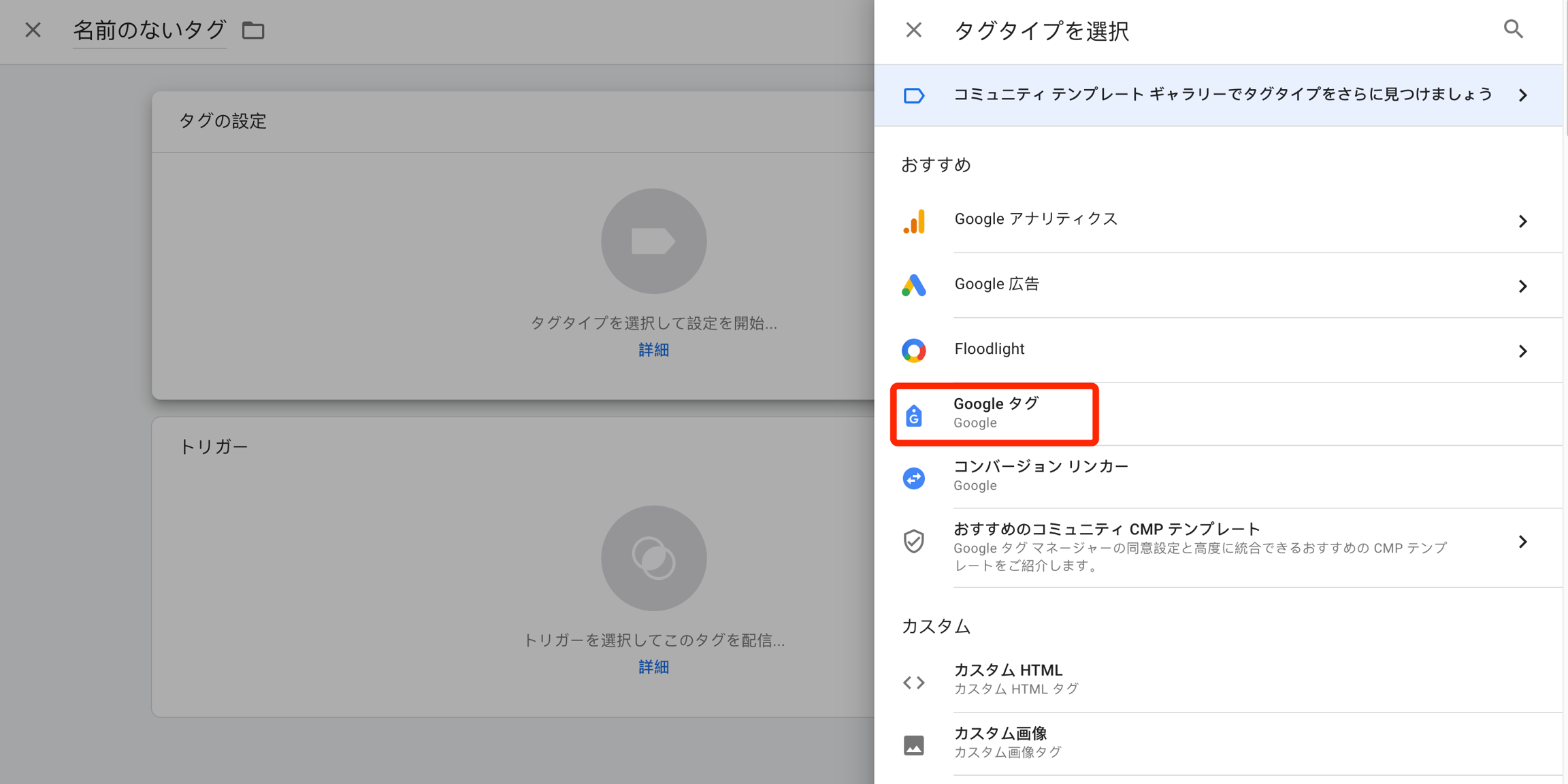 Googleタグマネージャー(GTM)を使用して「Google tag」でインストールした場合は、GA4がPtengineからのデータを回収できない可能性があります。