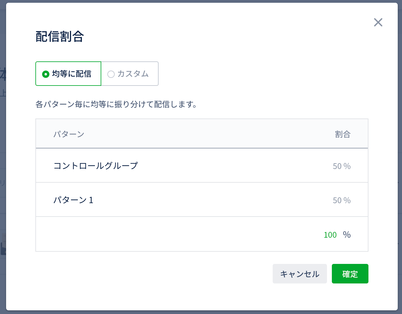 均等配信:各パターンにトラフィックを均等に振り分けて配信します。