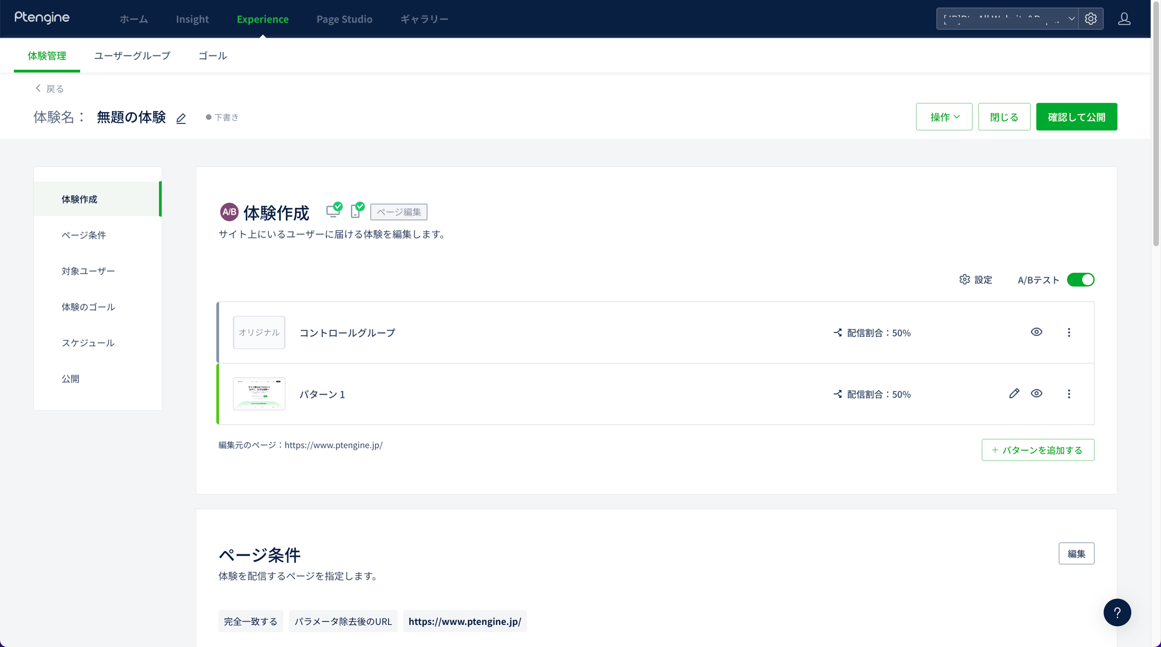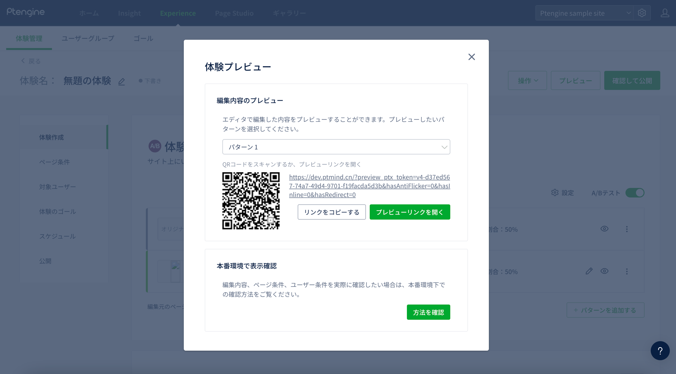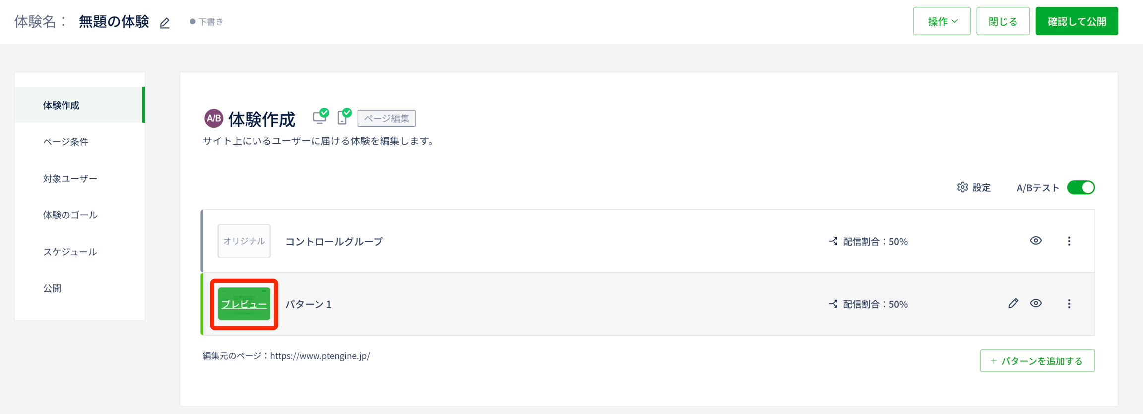 3で指定したページ条件に一致したURLを開き、体験の表示状況を確認する