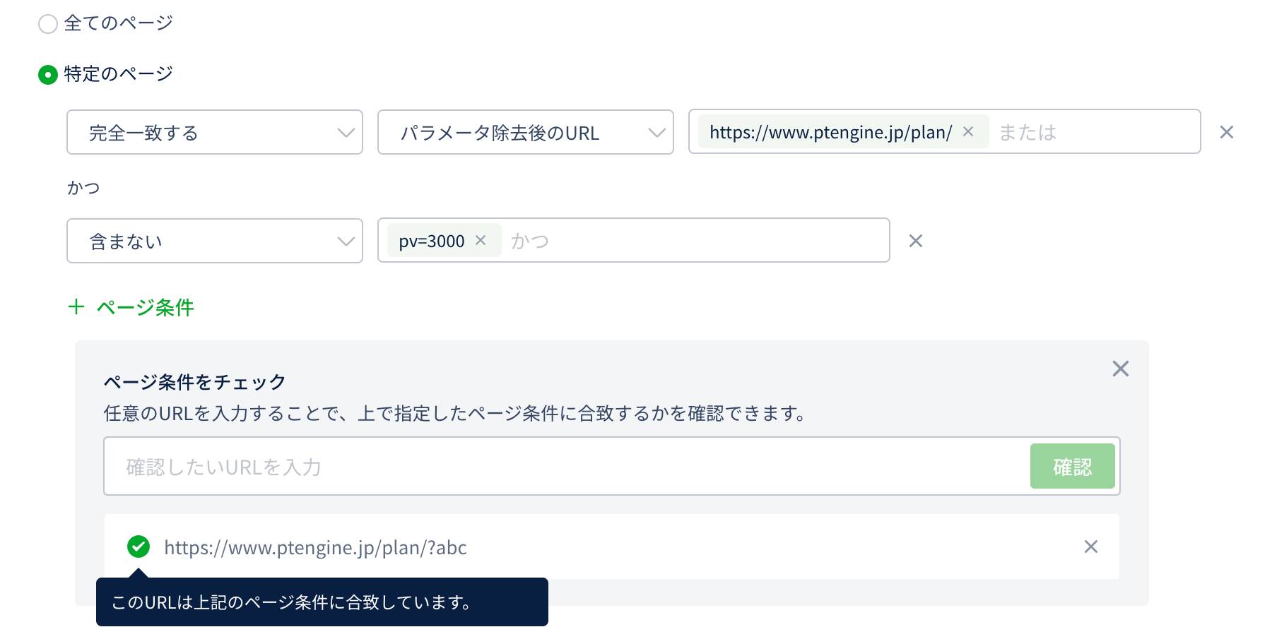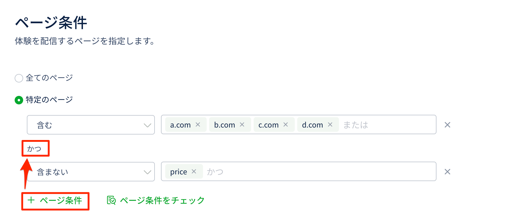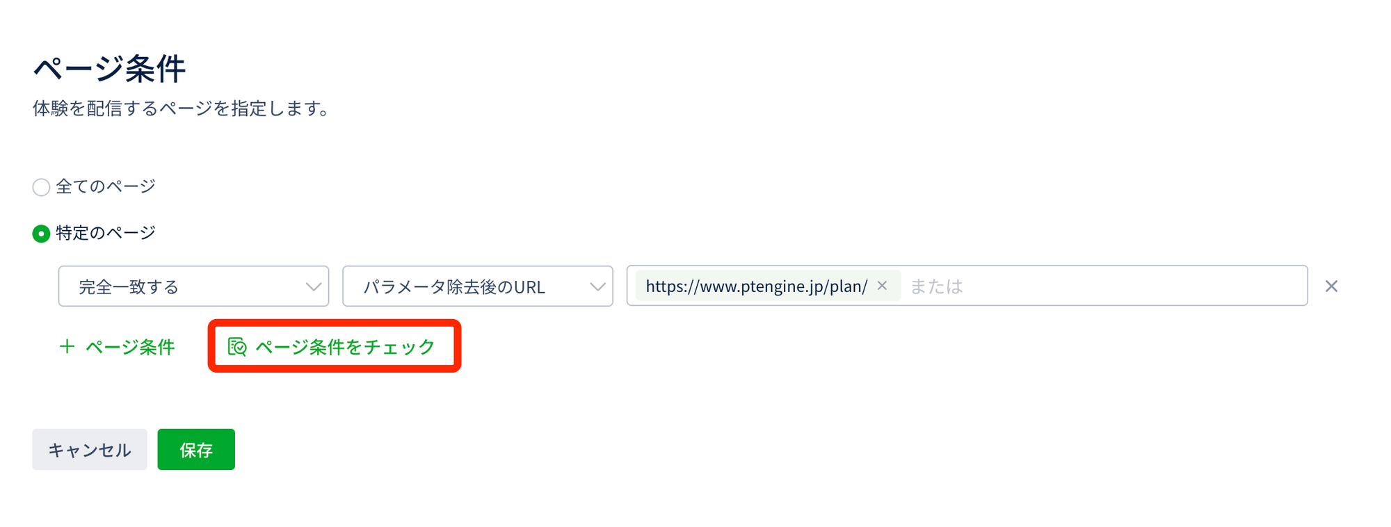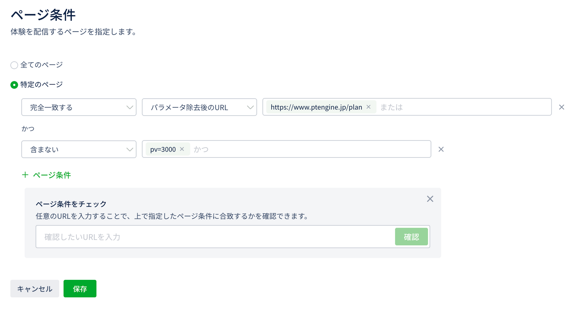 ページ条件は、作成した体験をどのページで表示させるかを決定する重要な設定です。