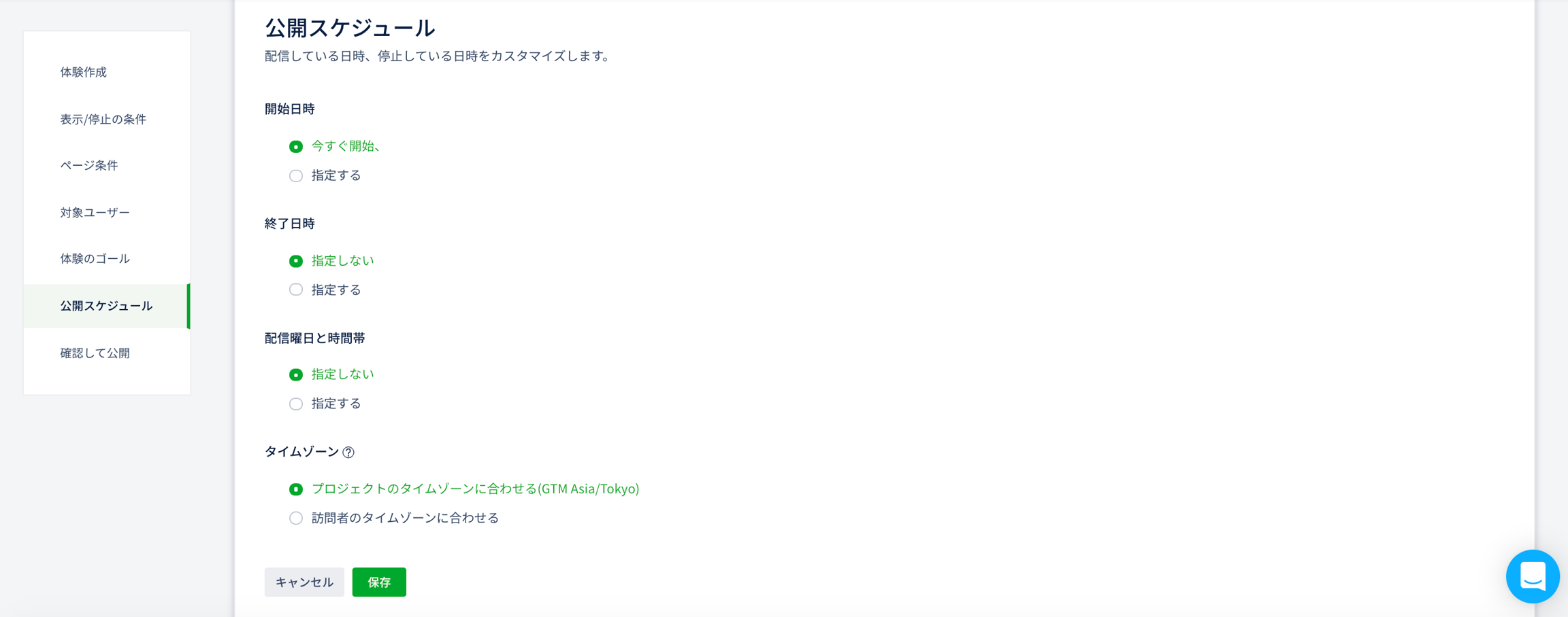 Ptengine Experienceでは、体験の配信スケジュールを柔軟に設定できます。