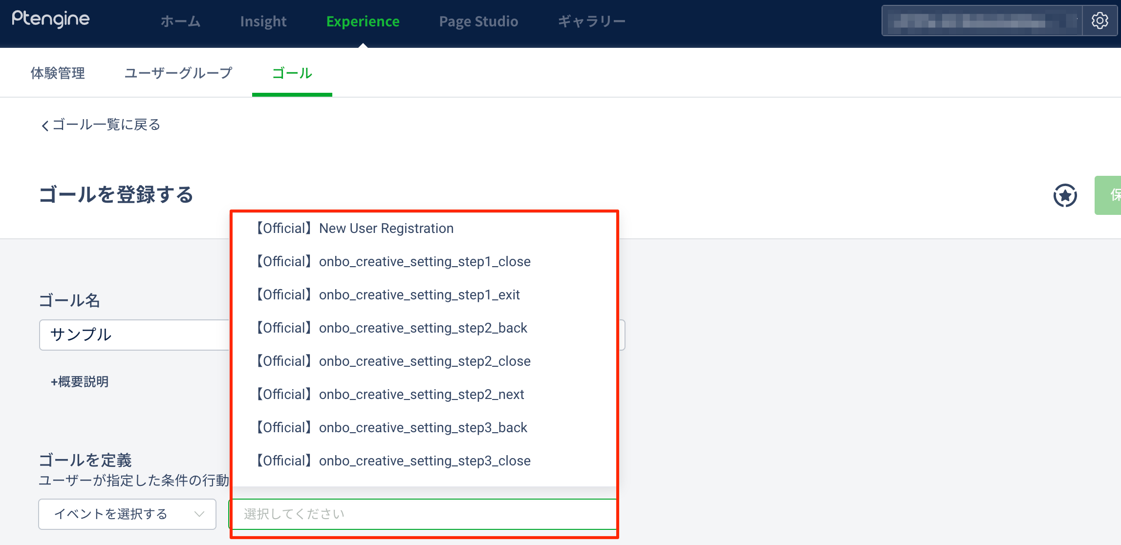 体験にゴールを追加することで、その体験がユーザー行動に与えた影響を計測・分析できますので、体験を配信する場合は必ず設定しましょう。