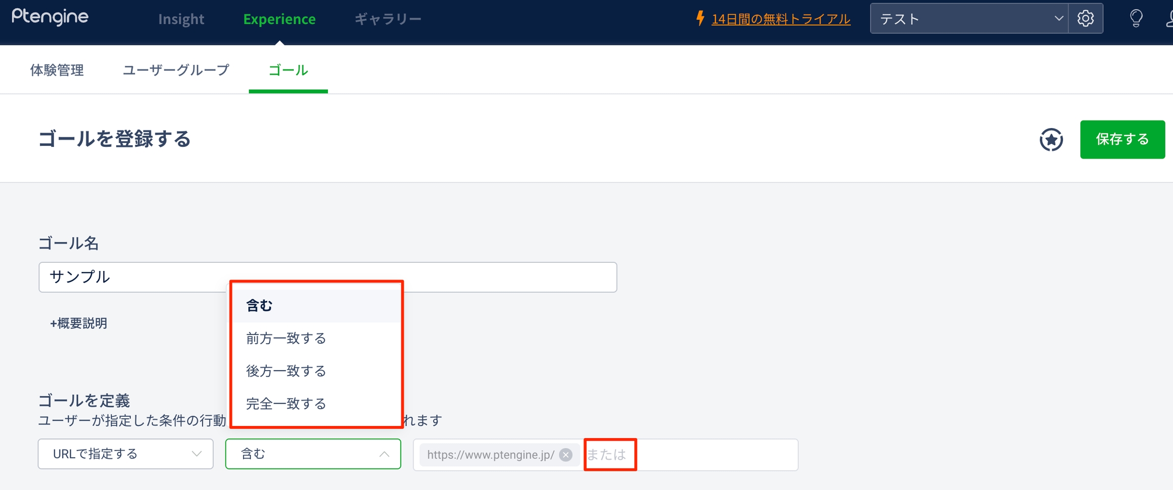 Ptengineでは、1つの体験に複数のゴールを追加できるので、体験を様々な切り口から評価できます。