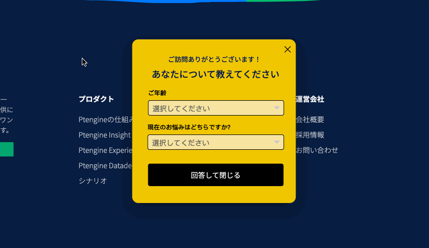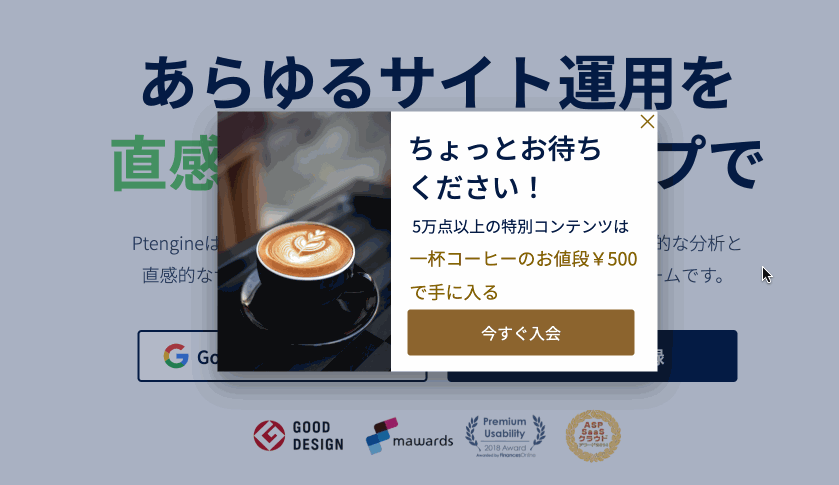 Ptengine Experienceでは、Webサイト内のユーザー体験を向上することを目的としたポップアップやページ編集機能を提供しております。