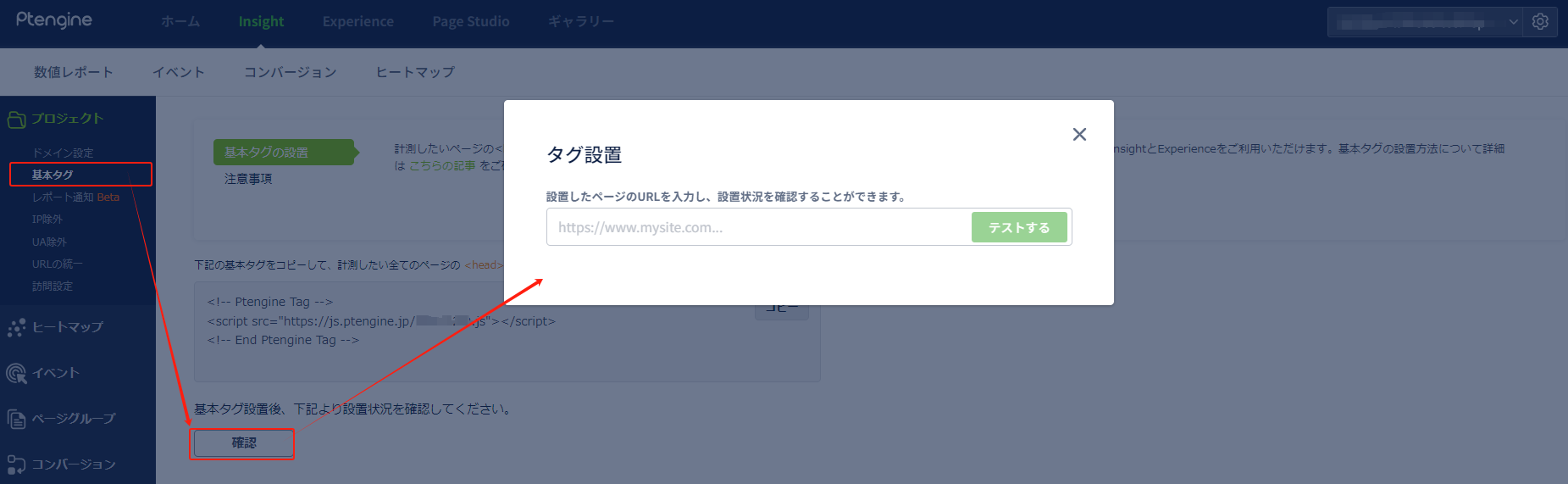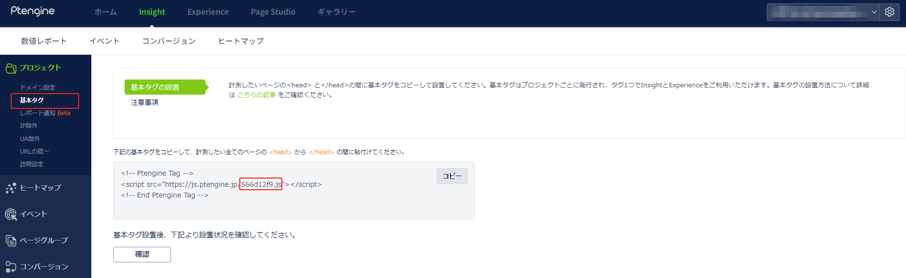 Ptengineの計測タグをWebサイトに設置した直後の初期設定時