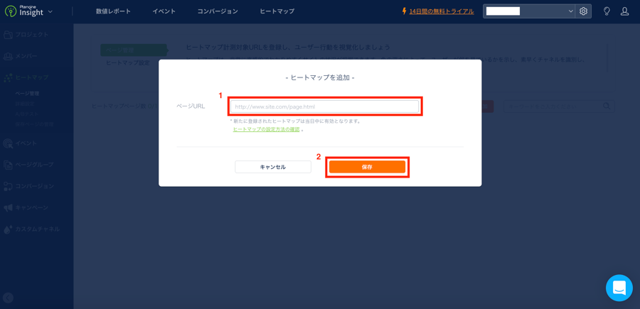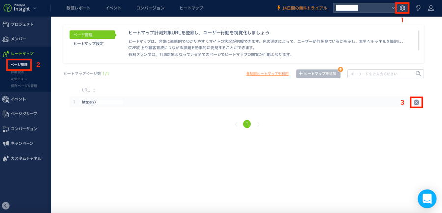 ヒートマップの計測対象ページや表示仕様は、カスタマイズして設定・管理できます。 無料版では、分析したいページのURLを1つ指定する必要がありますので、計測対象のURLを変更したい場合は、この機能をご利用ください。(有料プランでは、設定不要です。)