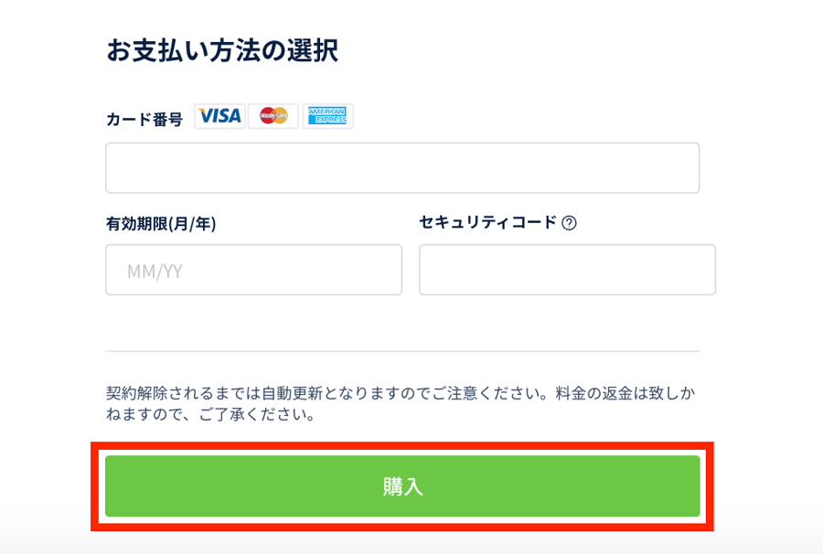 お客様が選択したプラン料金や契約期間をご確認の上、問題がなければ「購入」をクリックしてください。これで購入手続き完了です。