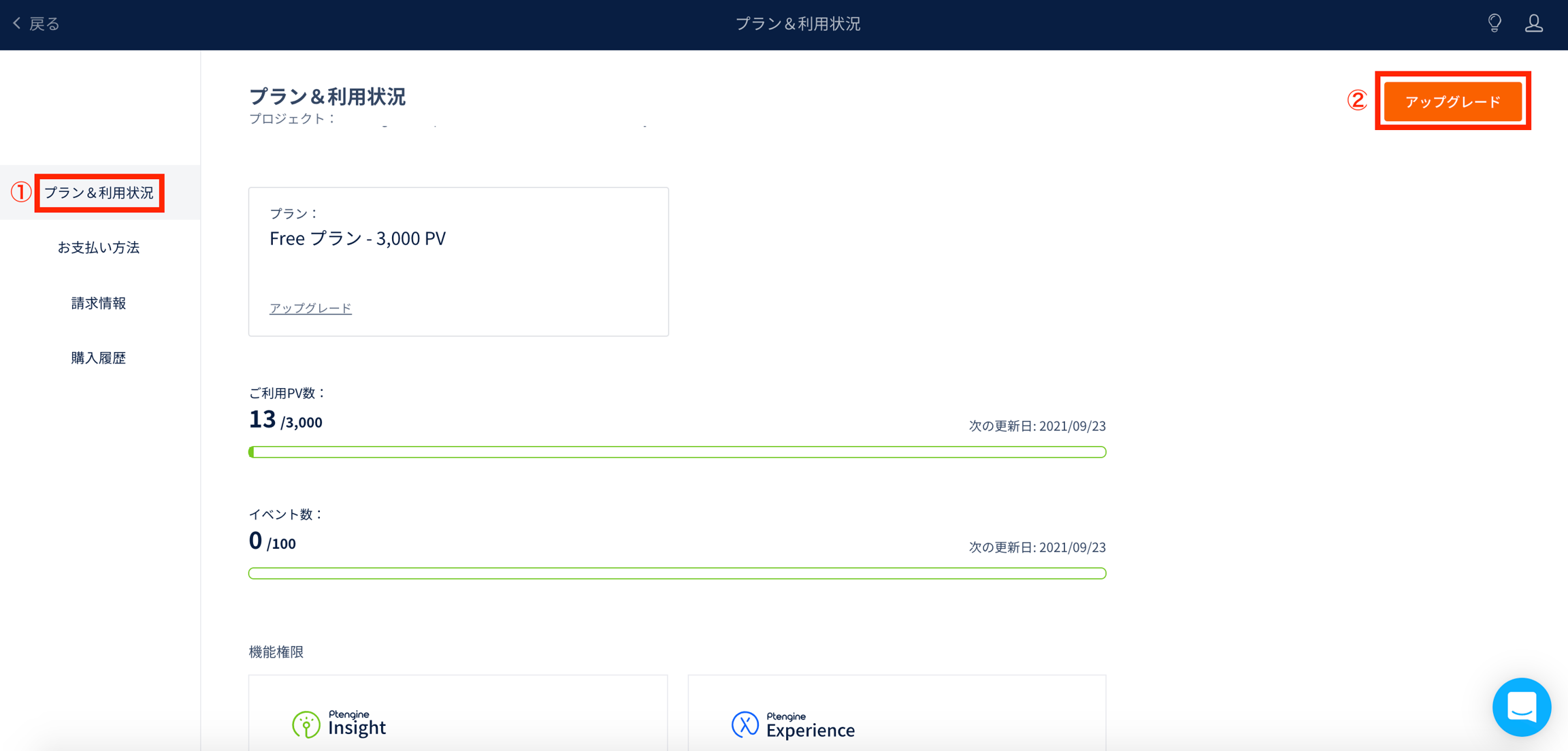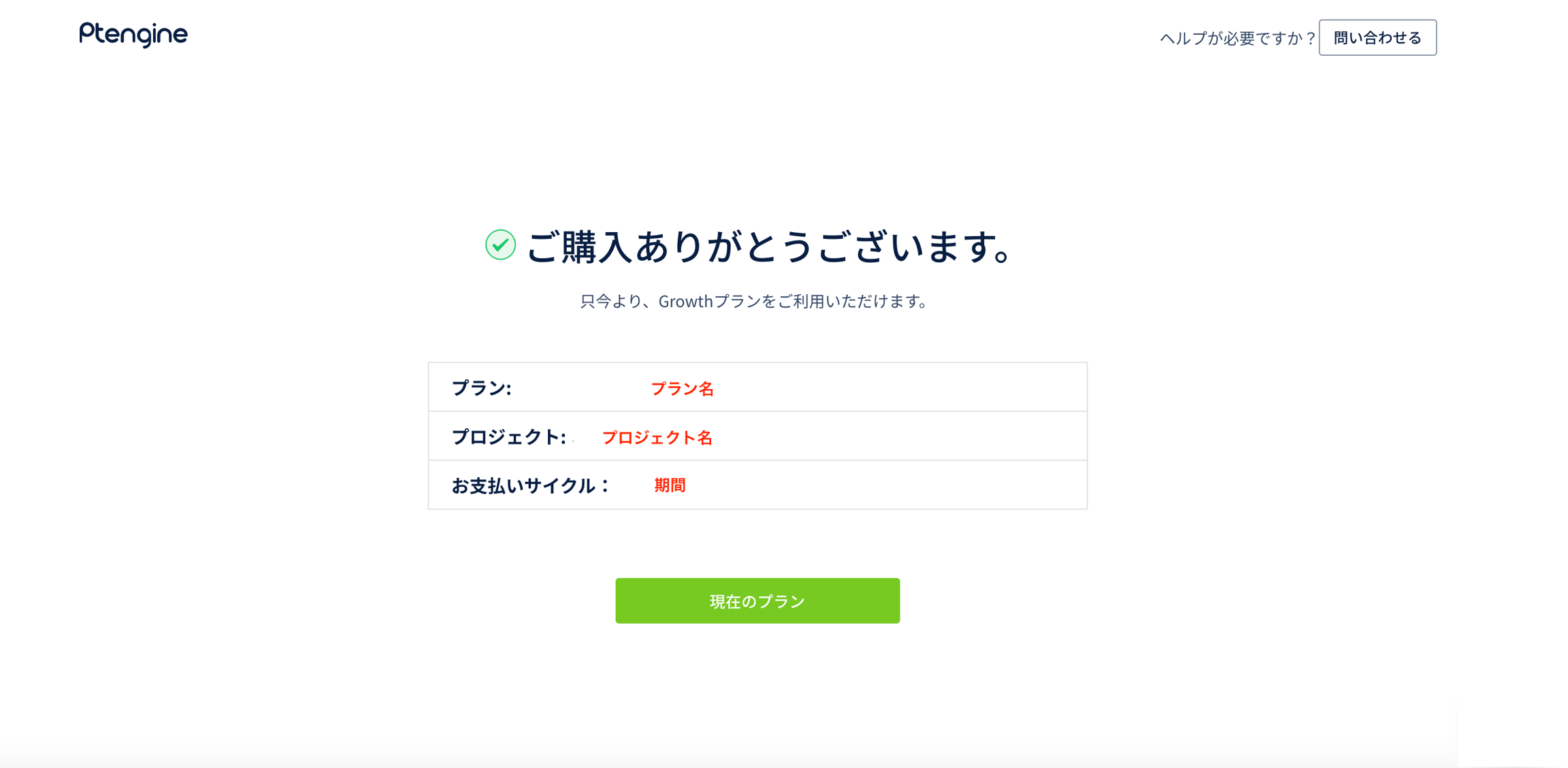 Tips: 1. プランの契約はプロジェクト単位となることをご了承ください。 2. プロジェクト作成者にしかプランを購入できないことをご了承ください。3. 購入履歴の確認方法について、Ptengineログインした後 「プラン確認・購入」 >> 「購入履歴」にて購入履歴(領収書)のご確認および印刷は可能です。